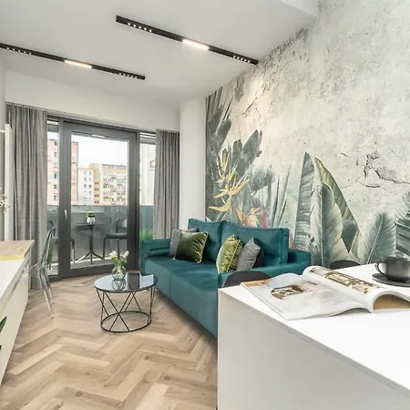 Beliggende i Stettin, indeholder Comfy Apartments 4-5Th Floor Hanza Tower - Sauna & Pool ferielejlighed spa terapi og terrasse-restauranten. Lejlighed ligger 2 km fra Rosenhaven og ca. 1 km fra Sommerteatret.